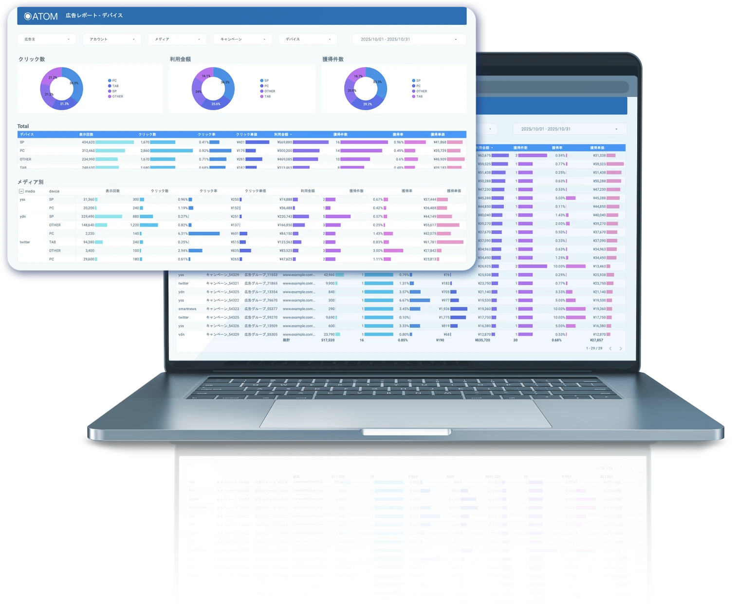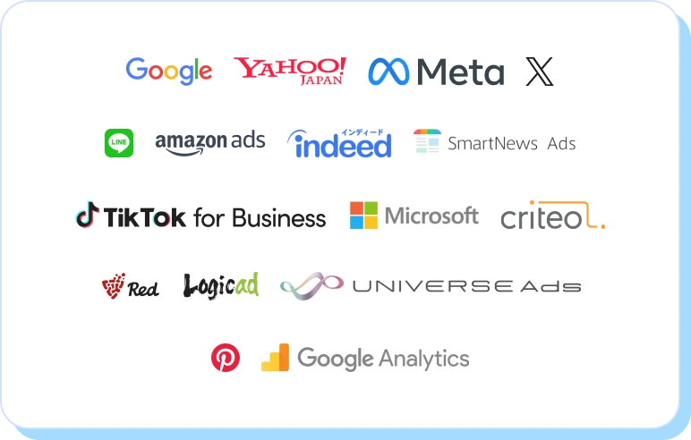 主要な広告媒体と連携して毎日データを自動で取得。媒体ごとに異なる形式のデータをATOMが使いやすい形に整理します。