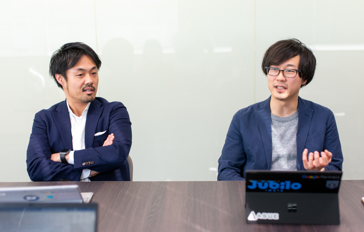 高橋氏: 私は運用者です。主に広告運用と、お客様の窓口を担当しております。普段は広告のアカウント改善が主な業務で、それに伴うお客様の打ち合わせや会議などを、日々行っています。制作部門は別にありまして、案件によっては2つの部署が一緒に動くこともあります。